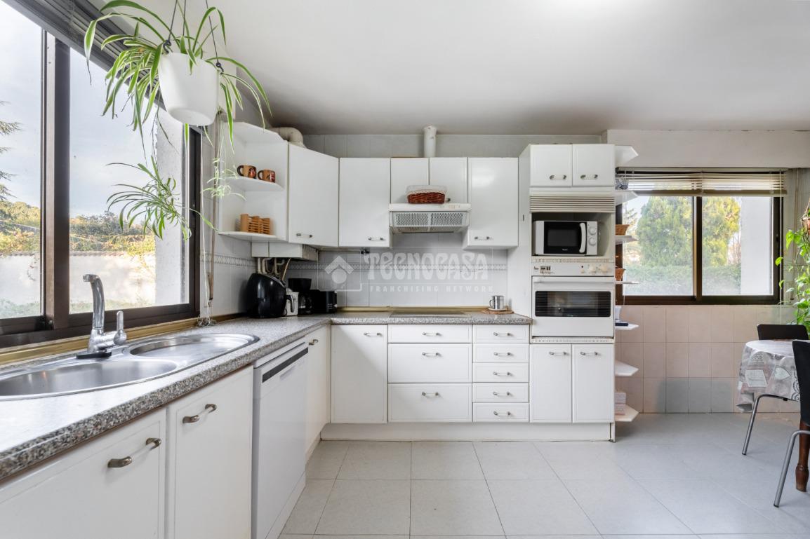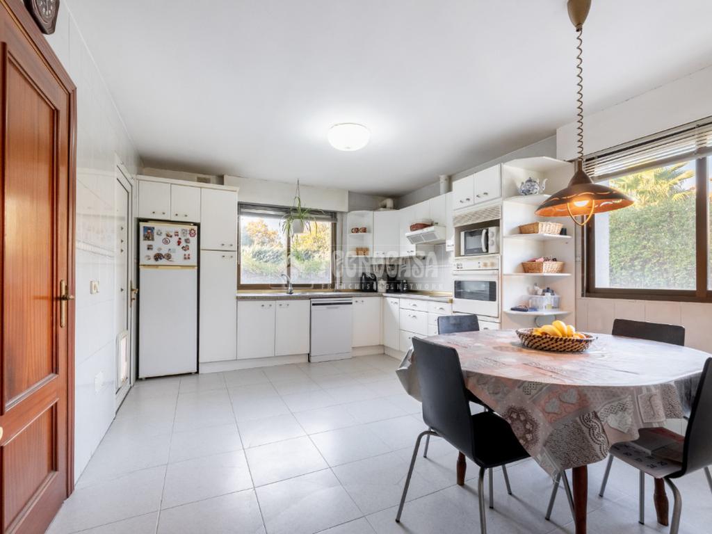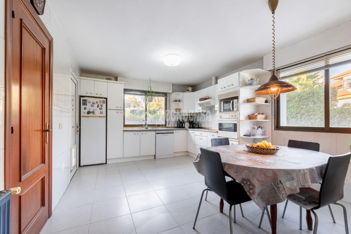 En la primera planta se encuentran los otros cuatro dormitorios, todos ellos muy luminosos y con armarios empotrados, además de uno (el principal) con cuarto de baño en suite con bañera y bidé; y un balcón en otro de los dormitorios. En esta planta se emplaza de igual modo otro cuarto de baño completo, también con bañera y bidé. Finalmente, en la planta inferior hay un amplio espacio de garaje con capacidad para varios vehículos, en función de su tamaño y distribución en el mismo.