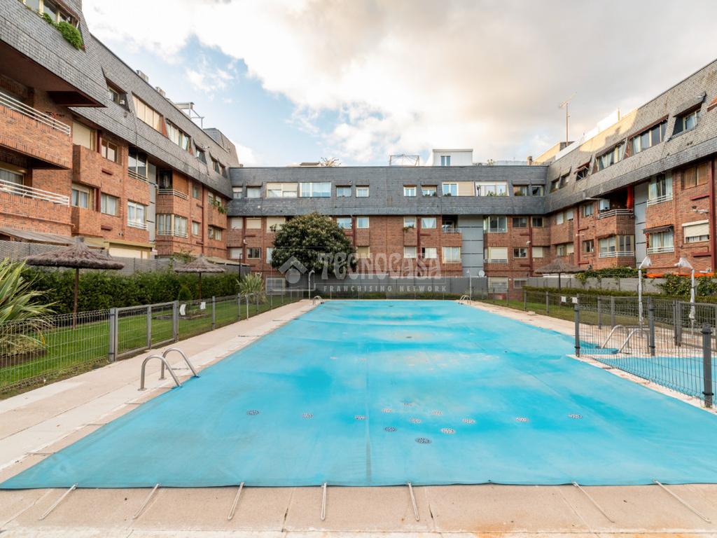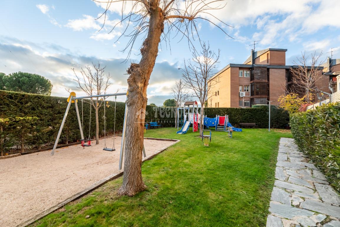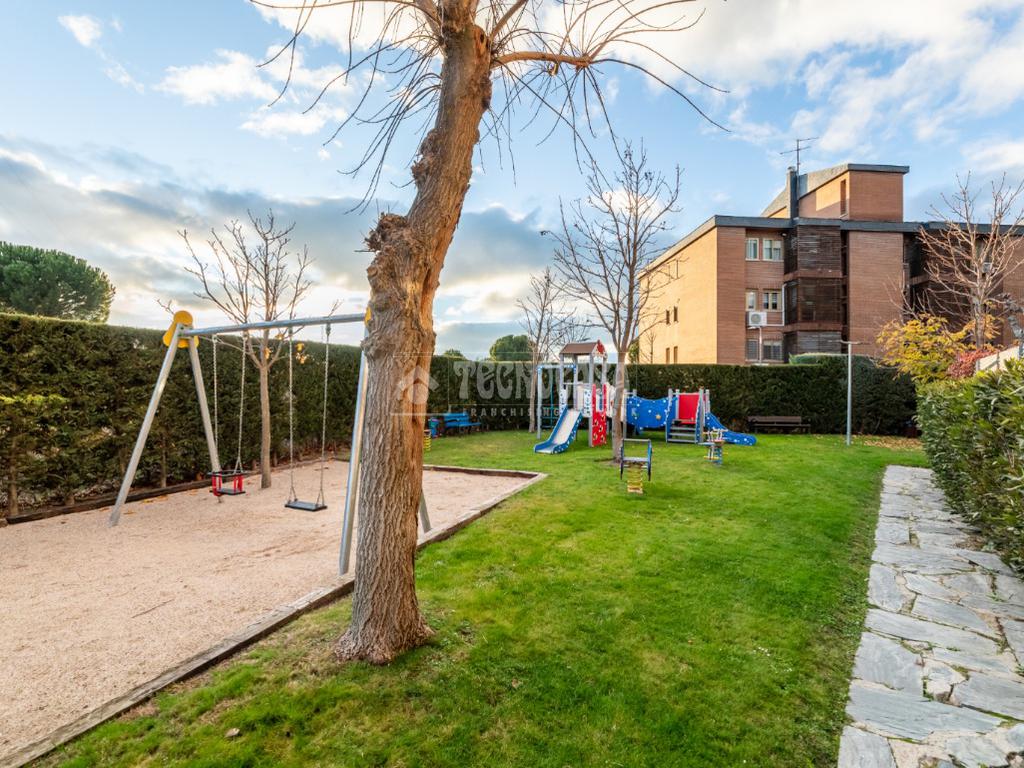 Inmobiliaria en Las Rozas De Madrid - Tecnocasa Estudio Las Rozas Parque París Slu vende fantástica vivienda de 3 dormitorios y 2 cuartos de baño con terraza en una magnífica urbanización del BurgoCentro-Parque París de Las Rozas: Rozas Park 3, que cuenta con conserje, zonas verdes, piscina infantil y piscina de adultos, pista de tenis y parque infantil.