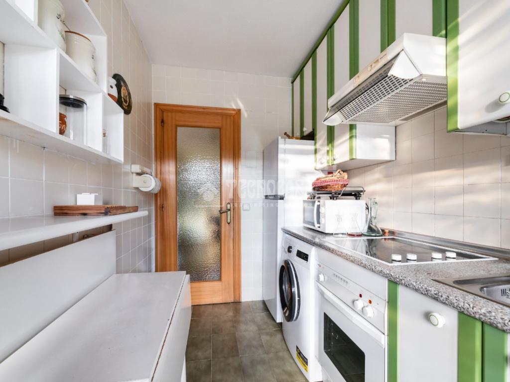 El inmueble se distribuye en un amplio salón/comedor de grandes dimensiones que dispone de una fabulosa terraza con verja que es idónea para colocar una mesa con varias sillas donde poder disfrutar del exterior y comer. La casa tiene junto al propio salón una cocina en pasillo con distribución a doble encimera y mucho espacio de almacenamiento con su propia terraza/tendedero, también con una verja y con cerramiento de ventanas.